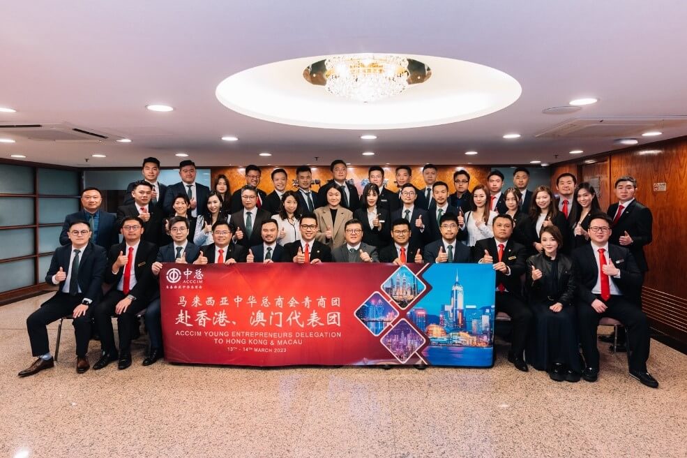 中总青商团总团长李烔良率团一行 19 人于 2023 年 3 月 13 日及3月14日,赴香港中华总商会及澳门中华总商会进行交流。