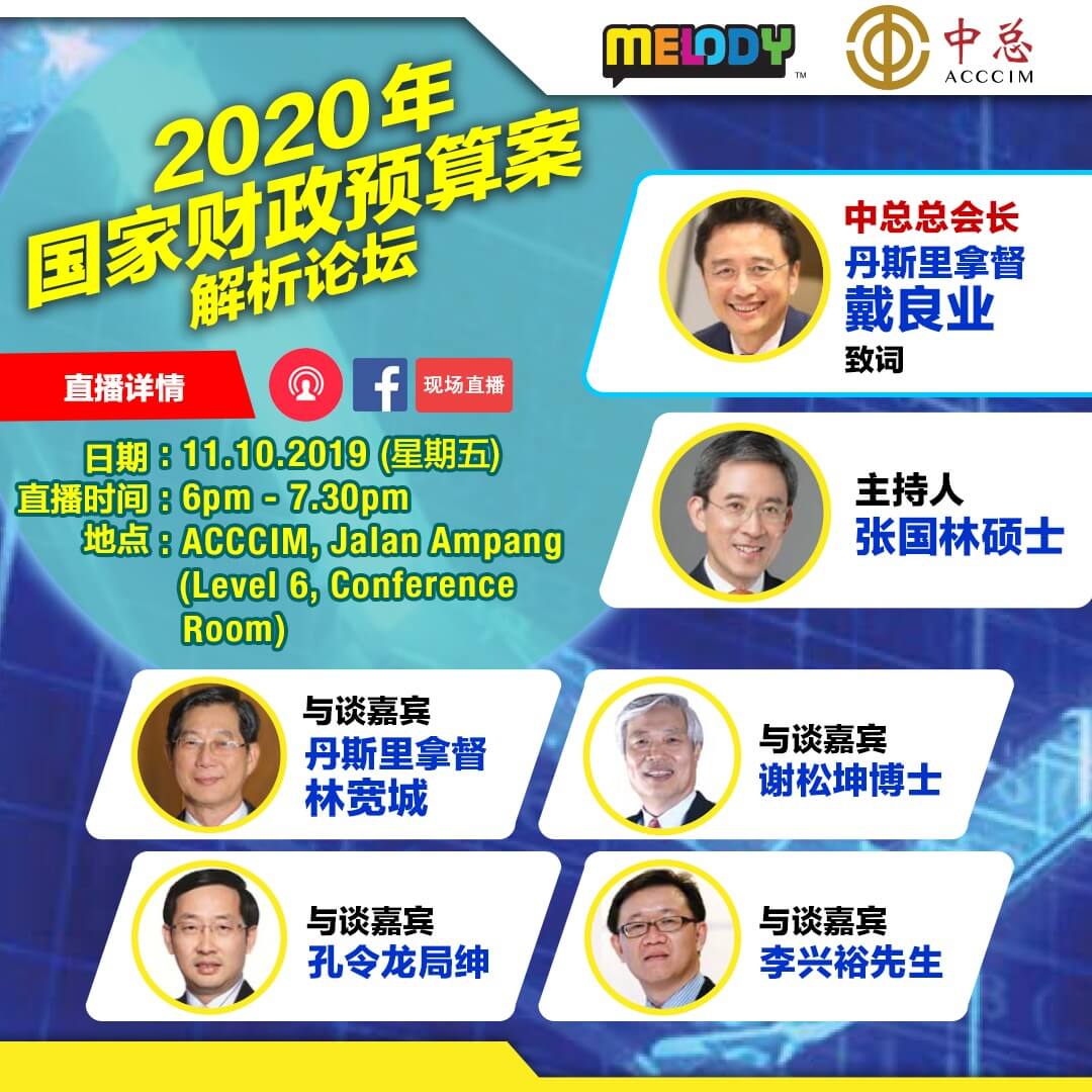In conjunction with the announcement of National Budget 2020 by The Minister of Finance at Parliament, ACCCIM will organise a National Budget 2020 Forum on 11th October 2019. Details are as follows: