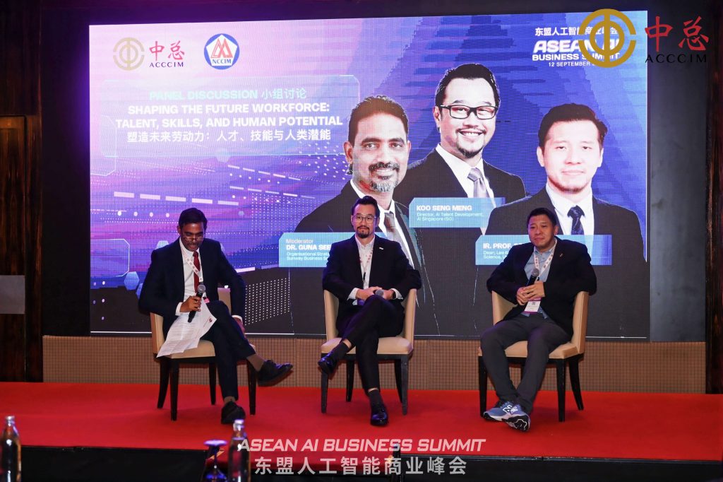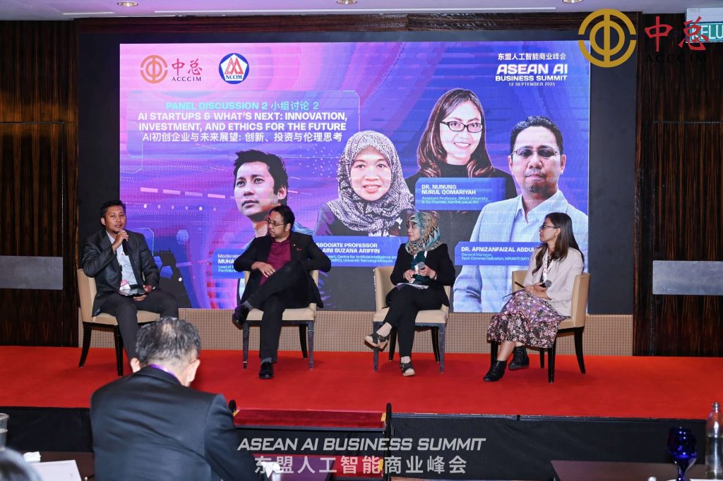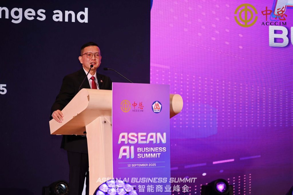 由中总主办,马来西亚全国总商会协办的“2025东盟人工智能商业峰会912日假雪州万达酒店举行,吸引共1600人参加。峰会由副首相拿督斯里法迪拉主持开幕,惟副首相因公事繁忙,由数字部长YB哥宾星代表。 本次峰会也有幸邀请来自大马、中国、美国、新加坡、泰国、印尼、文莱等8个国家及地区的40位演讲嘉宾,围绕8大行业进行专题分享。
