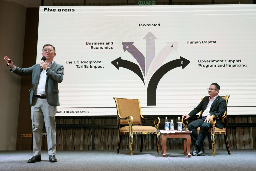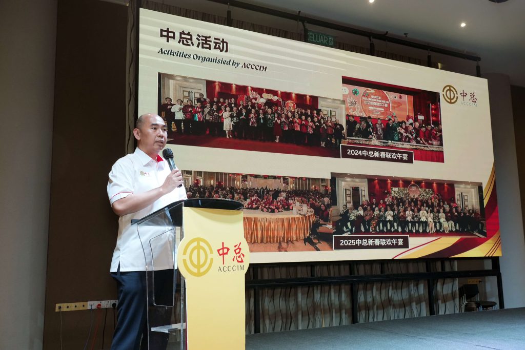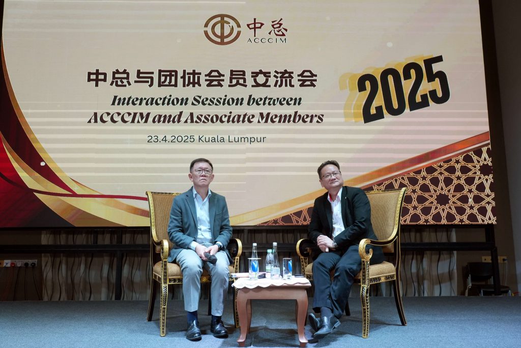中总于4月23日于中华总商会大厦成枫堂举办中总与团体会员交流会,参会者包括19个团体会员、3个非团体会员组织以及中总领导等近百人出席。中总与团体会员交流会由中总社会经济研究中心执行董事李兴裕先生主持。他也在会上分享了关税变动所带来的影响。另,中总总秘书拿督陈杰辉也汇报了中总 MyMudah 的成立及利商特工队Pemudah的工作。