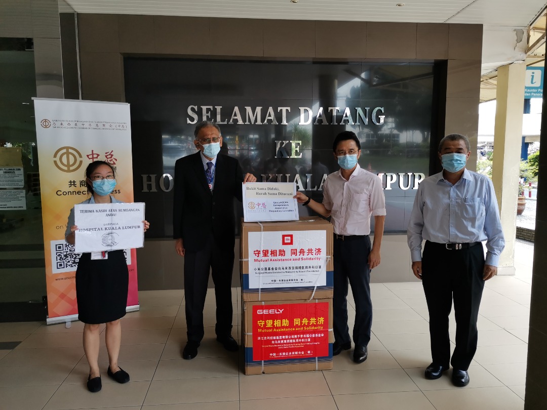 马来西亚中华总商会(中总)总会长丹斯里拿督戴良业,代表中国—东盟企业家联合会筹备委员会,将小米公益基金会、浙江吉利控股集团有限公司,以及李书福公益基金会名义联合捐助23万人民币(约14万令吉)的医用口罩予吉隆坡中央医院,由吉隆坡中央医院总监拿督Heric Corray医生接收。见证代表有中总总秘书兼中总新冠肺炎捐赠物资特别小组总统筹拿督陈镇明、吉隆坡中央医院药剂师吴映红。